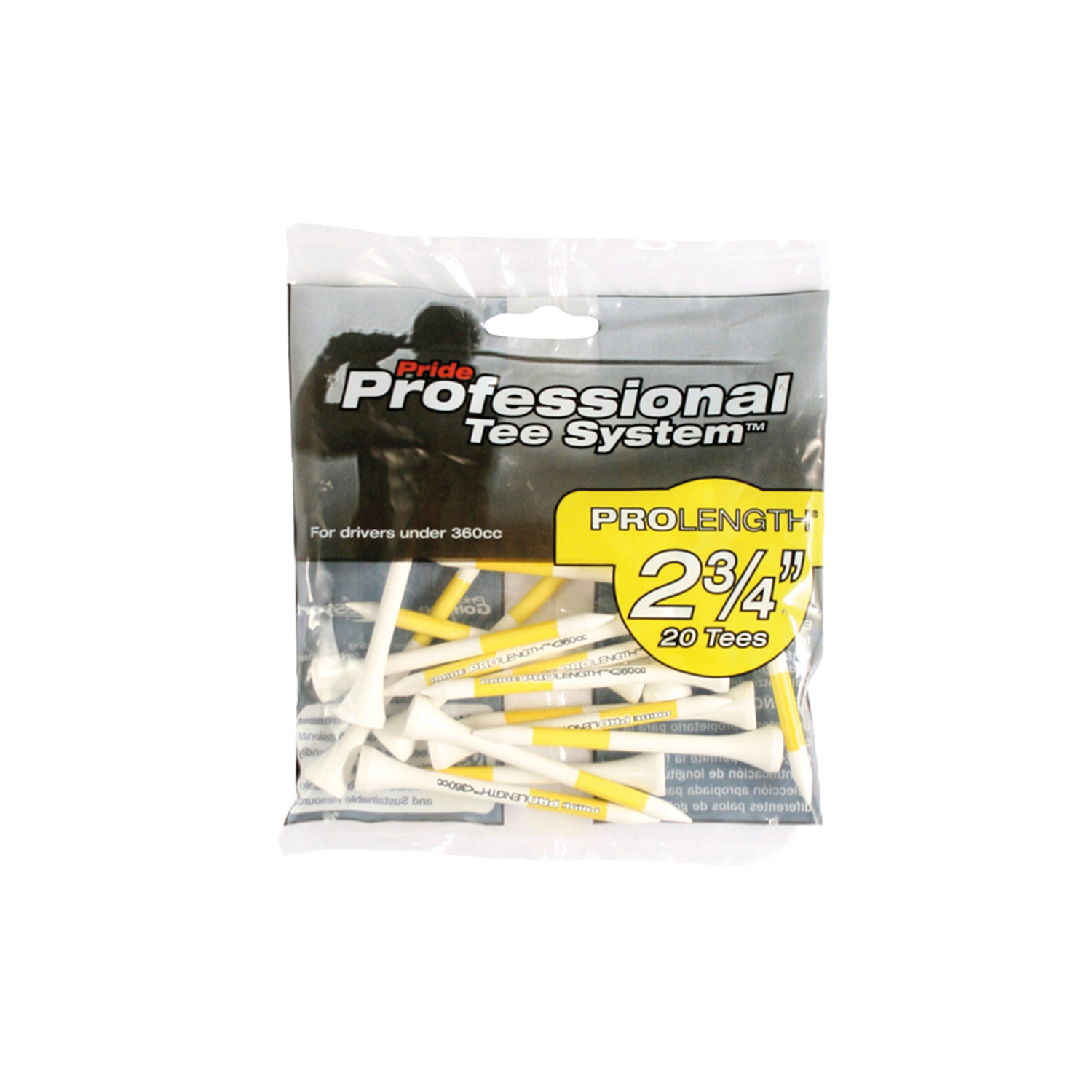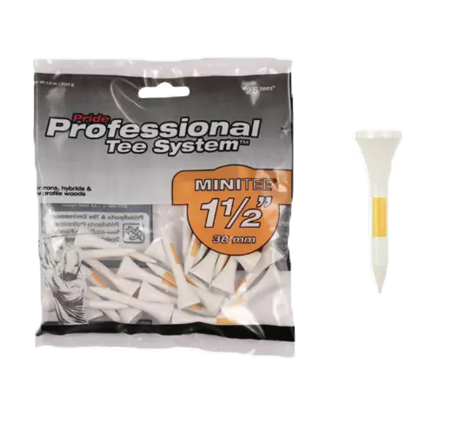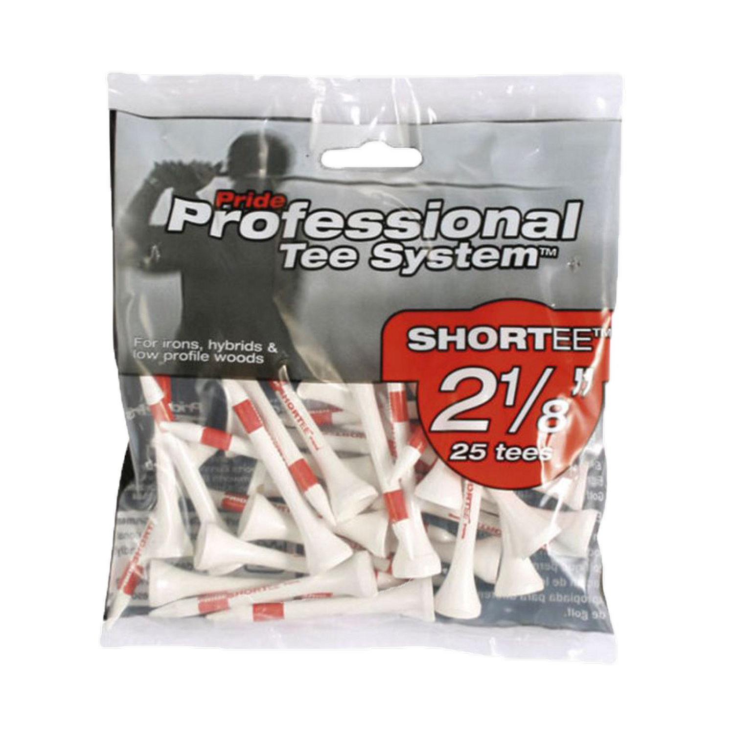 Träpeggar från Pride Professional Tee System, designade för olika klubbor och slag. Finns i flera längder och färgkodade för enkel användning.